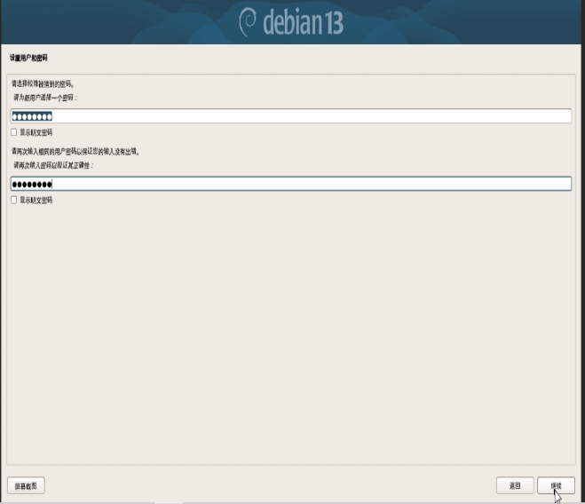 - 现在是要为账号xiaolin创建密码,非常关键,不能忘记(需要输入两次 【继续】