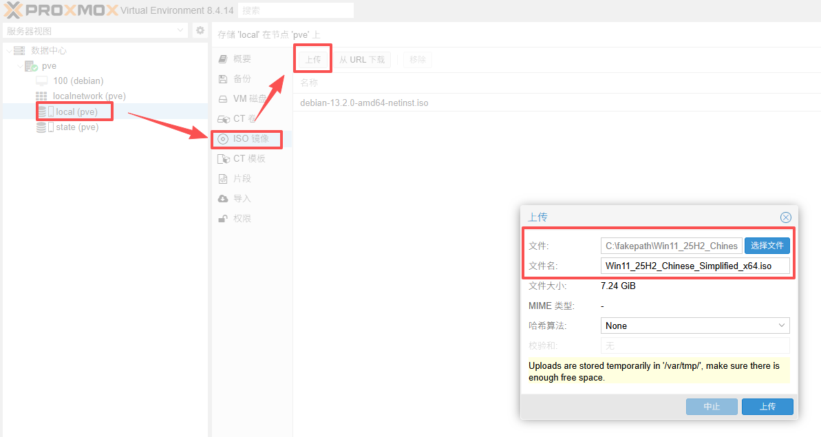 上传镜像到PVE