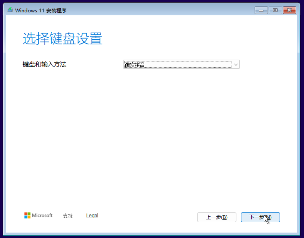 - 选择国家/地区,默认输入法,跳过 添加键盘布局【下一步】