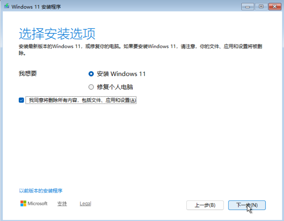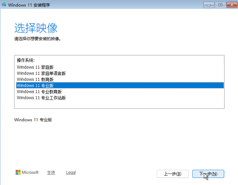 - 我这里选择安装Windows 11 专业版,按需选择,点击接受【下一步】