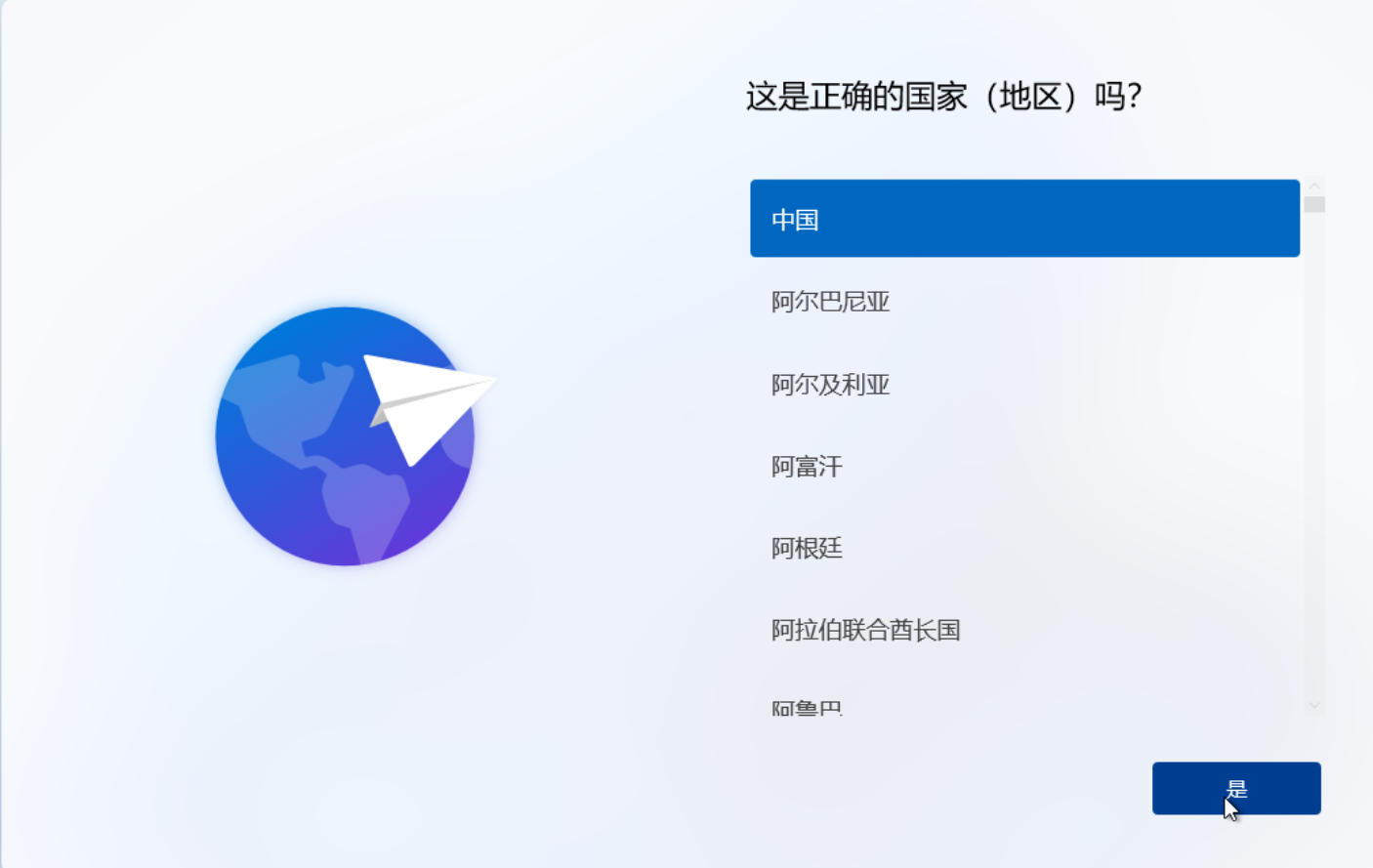 启动系统:选择国家地区