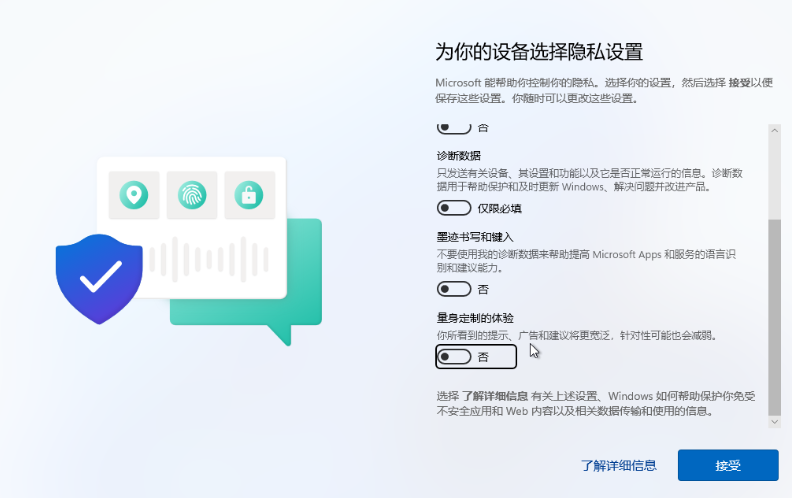 - 取消所有勾选【接受】