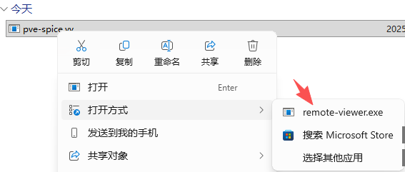 - 弹出下载后,右键选择 remote-viewer进行连接