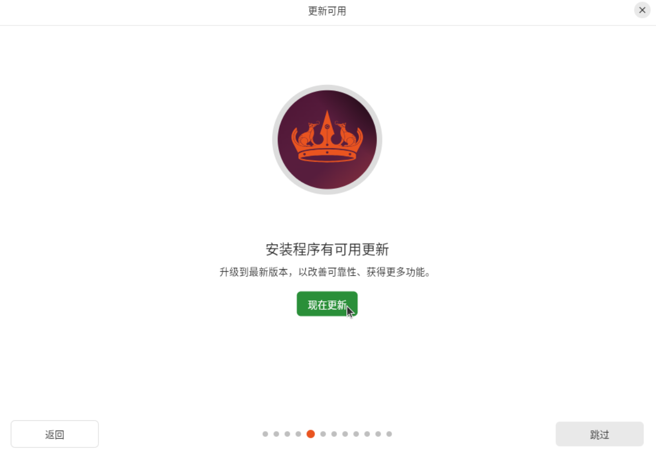 - 点击现在更新,等待,如果你不想现在更新可以跳过【Next】