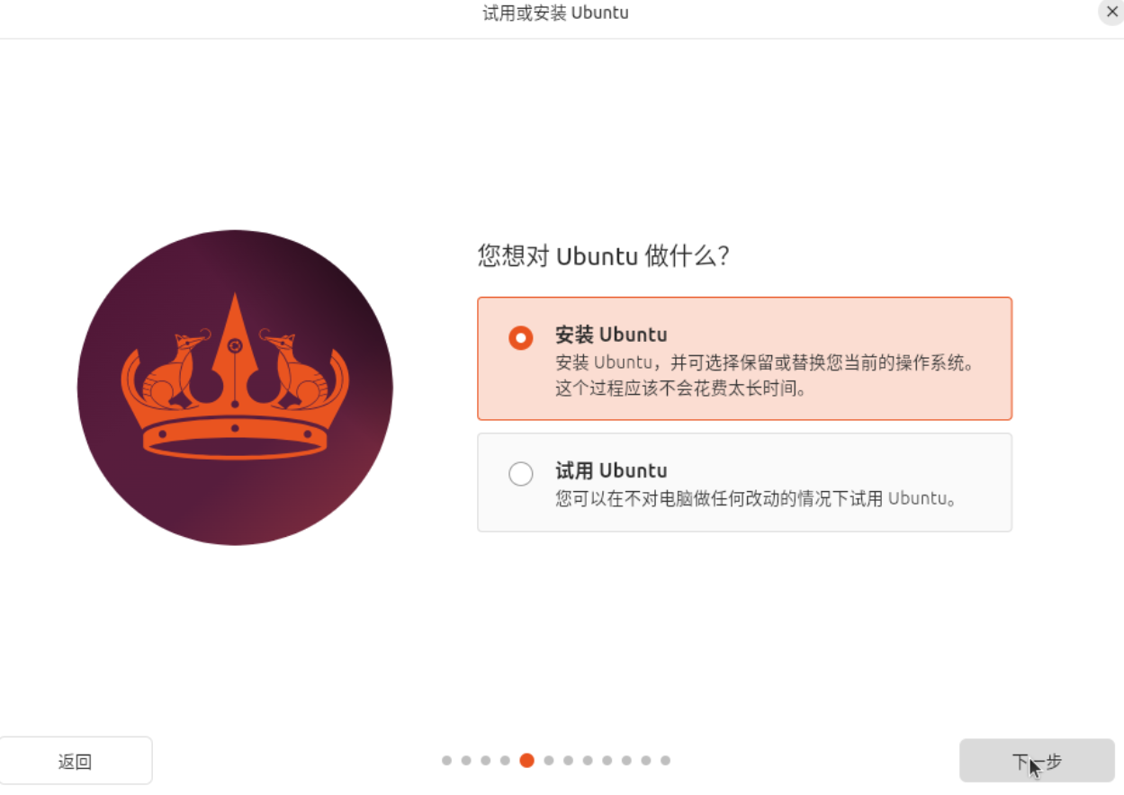 - 选择安装Ubuntu 【下一步】
