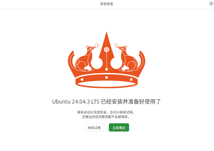 - 确认安装,等待系统安装好,重启系统