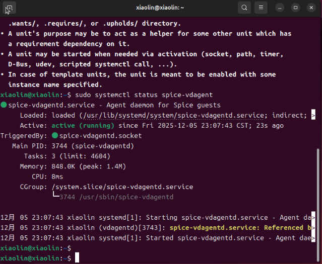 sudo systemctl status spice-vdagent