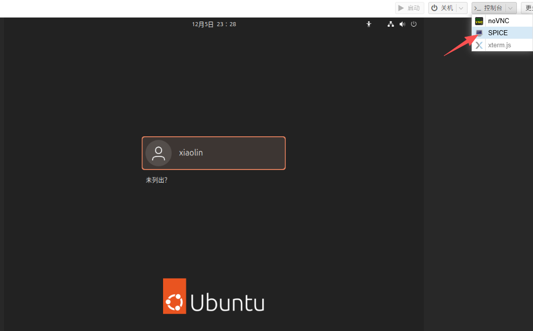 - 安装好后,启动虚拟机,在用户界面,选择SPICE